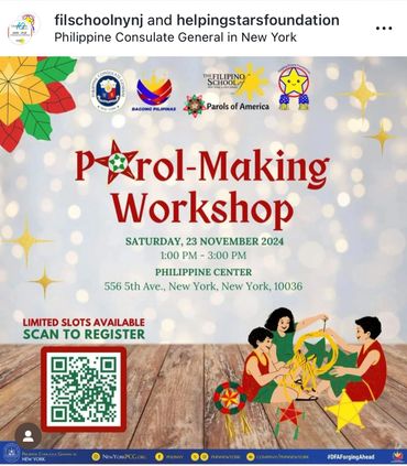 Helping Stars Foundation is proud and excited to participate in the Parol making workshop on Sunday Nov. 22nd with the Filipino School of NY & NJ at the Philippine Consulate General in NYC!